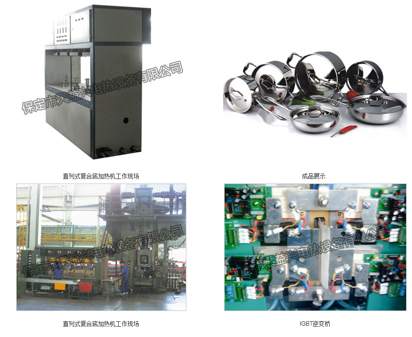 主要用于復(fù)合底鍋壓焊前的預(yù)熱,與摩擦壓力機配合,可實現(xiàn)復(fù)合金屬煲底壓焊工藝,俗稱“打底”。加熱機電源和機床均由微機控制,是由多套微機控制的電氣、機械、氣動一體化技術(shù)設(shè)備。